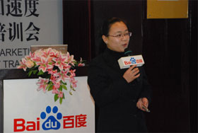 寒流入侵,涼風(fēng)習(xí)習(xí),吹不涼百度人暖暖的心田。2008年11月28號,營銷加速度——百度營銷專家培訓(xùn)會在我司三樓商務(wù)會所拉開了帷幕。眾多企業(yè)家朋友齊聚一堂,敞開心扉,交流分享。我司美女主持張捷女士擔(dān)任會議主持,貼心的問候,朝氣的笑容很快帶動了會場的氣氛。我司丁溱平女士和盧全女士擔(dān)任此次會議的主講,兩位主講精彩而深動的演講吸引了在場的每位客戶。